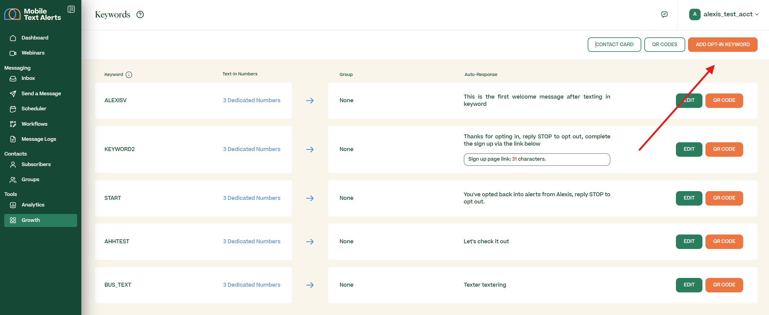 Your Mobile Text Alerts account comes with access to unlimited free opt-in keywords on your account's unique 10 digit number.